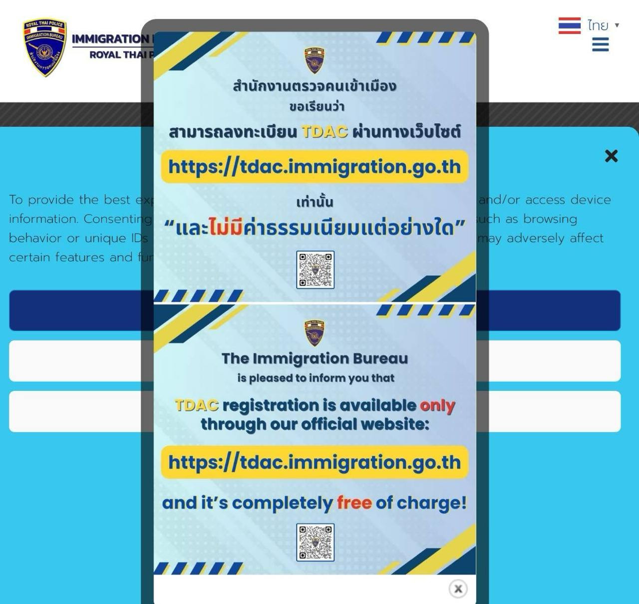 泰国移民局副局长兼发言人清隆警少将表示,近期发现不少旅客误通过非官方渠道注册TDAC,相关平台并未接入移民系统,存在误导与收费行为。他强调,唯一官方入口为 tdac.immigration.go.th,或通过移民局官网 immigration.go.th 跳转及扫描官方二维码填写。建议旅客至少提前3天完成在线登记,以便系统审核并通过电子邮件反馈结果,从而减少入境等待时间。