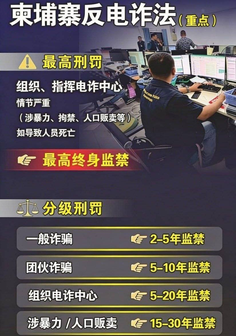 据官方介绍,该法律共设5章24条,围绕适用范围、执法机制、刑罚体系、资金监管及国际合作等方面作出全面规定,被视为目前柬埔寨针对电信诈骗犯罪最具力度的法律框架。
